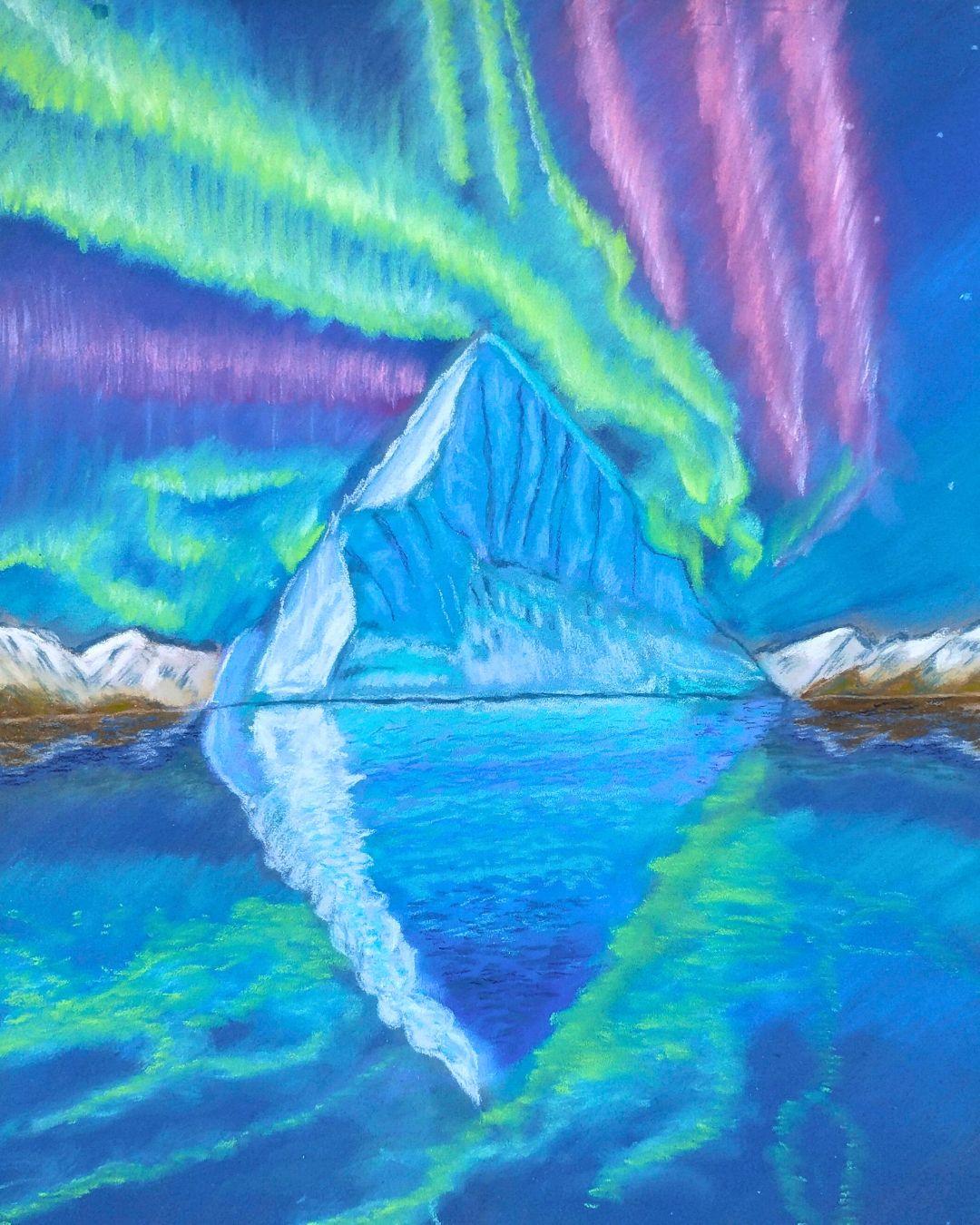 Dans ce dessin, le pastel sec devient un outil dâĂ©vasion, rĂ©vĂ©lant un monde oĂč la glace dialogue avec le ciel, oĂč chaque reflet semble ouvrir la voie Ă un ailleurs suspendu.