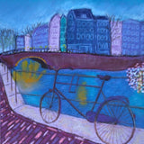 Les pavĂ©s rouges, les maisons Ă©troites, le pont arrondi⊠chaque Ă©lĂ©ment reprend les codes visuels dâAmsterdam, mais transfigurĂ©s par les teintes profondes et vibrantes de ma PĂ©riode Violet-Bleu-Rose.